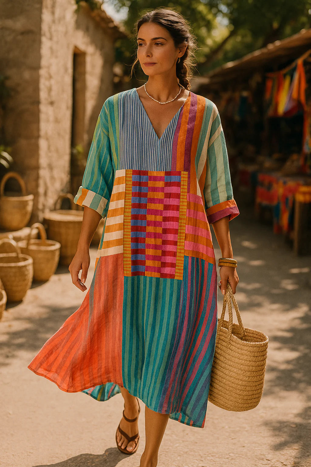 Oplev kunst og elegance med vores geometriske kjole Anastassia – en af vores mest elskede favoritter. Dette moderne design kombinerer tidløs charme med drømmeinspirerede mønstre, der fanger alles opmærksomhed. Den flagrende silhuet fremhæver alle kropstyper og garanterer både stil og komfort – perfekt til særlige lejligheder eller til at løfte hverdagslooket.